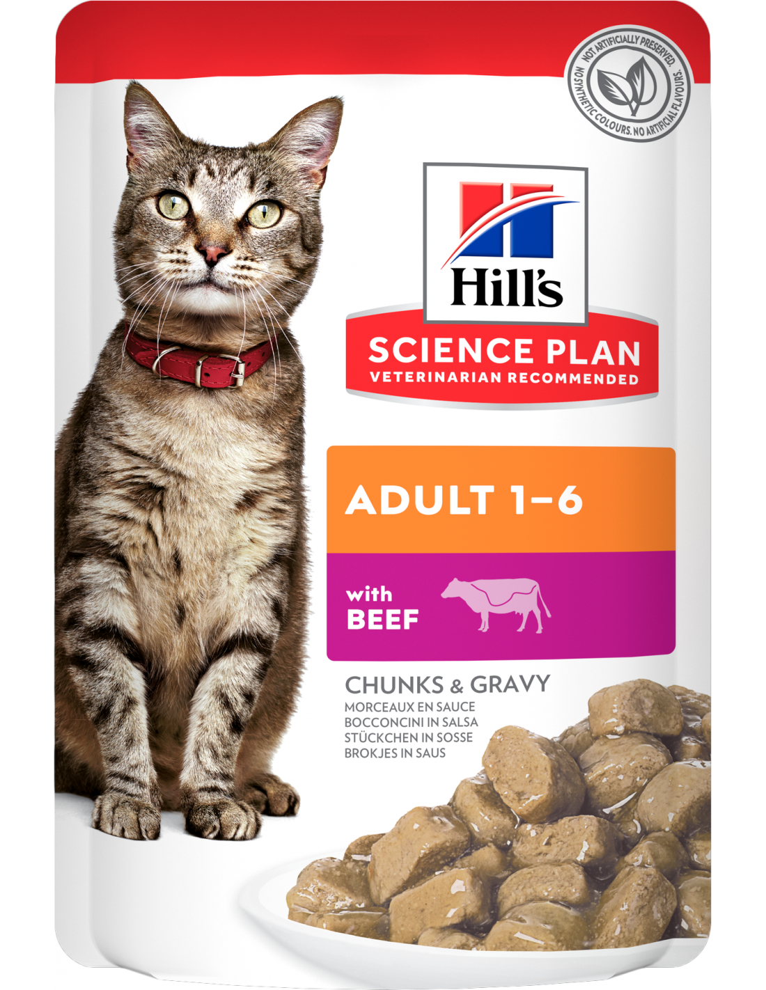 Hill's Science Plan Cat Adult Gravy Ternera es un alimento húmedo delicioso y nutricionalmente equilibrado, especialmente formulado para proporcionar la energía adecuada a gatos adultos de 1 a 6 años, favoreciendo su inmunidad, una digestión saludable y el mantenimiento de la masa muscular.