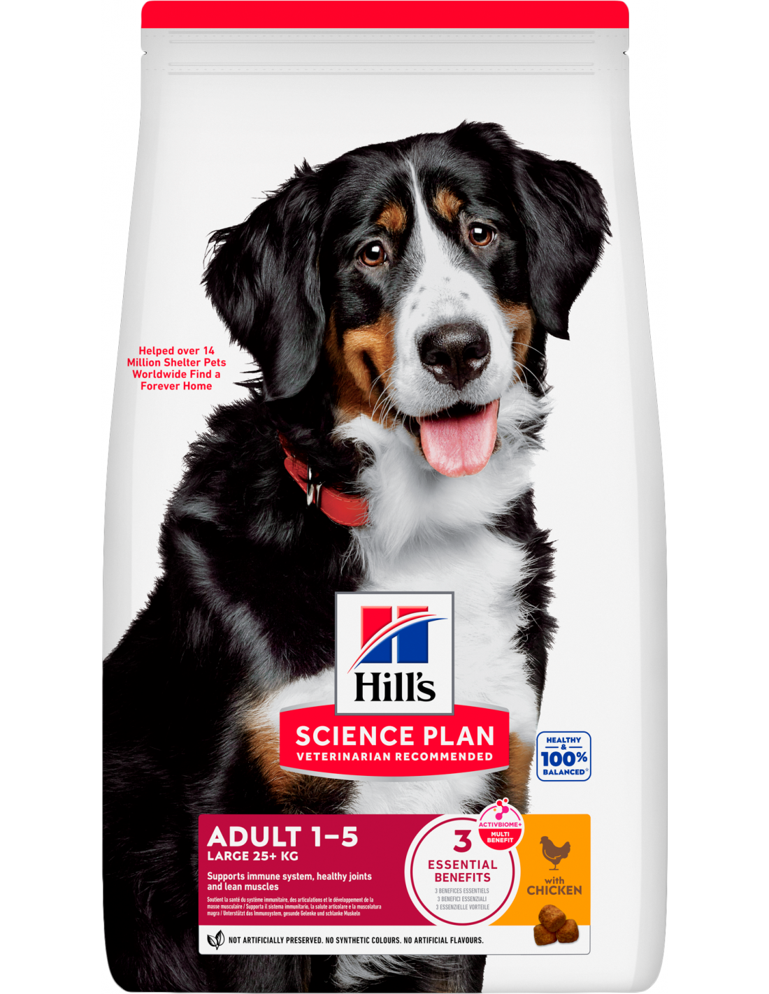Hill's Science Plan Dog Adult Large Pollo es un alimento completo, especialmente formulado con la tecnología ActivBiome+ Multi-Benefit para cubrir las necesidades energéticas de perros de razas grandes (de 1 a 5 años) y promover una nutrición 100% sana y equilibrada.