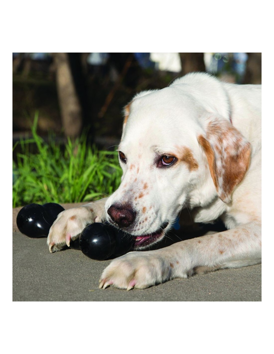 • Extrarresistente y duradera: elaborada con el característico caucho natural de KONG, resistente a las perforaciones y a los fuertes mordiscos con dientes afilados.