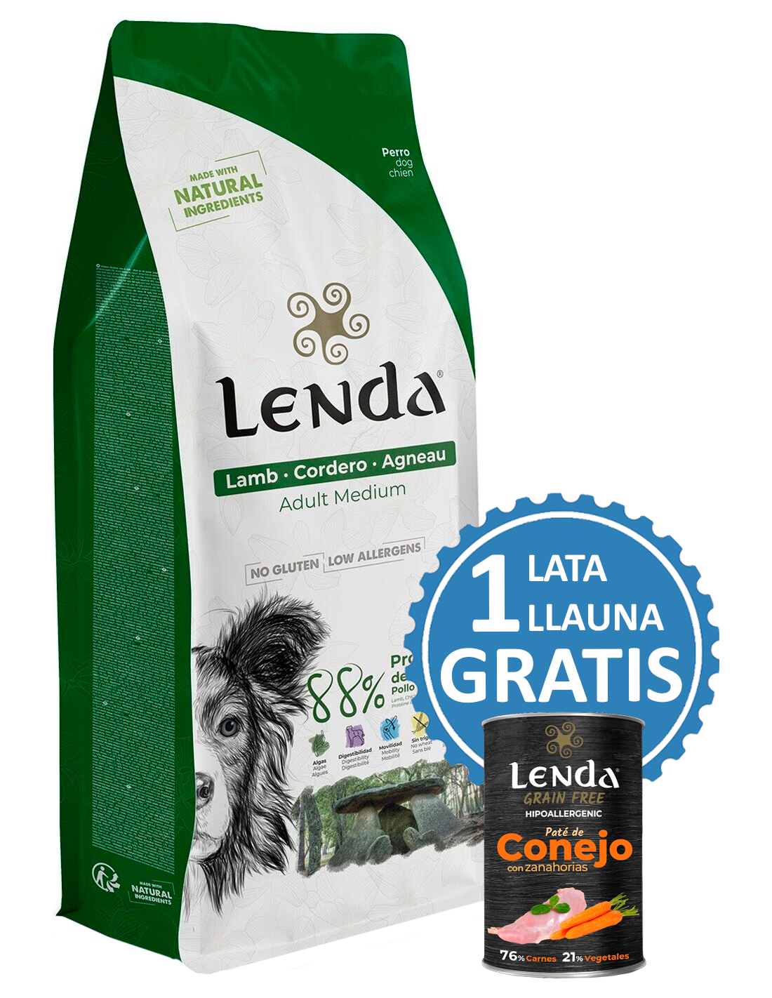 Lenda Adult Cordero es un alimento completo para perros jóvenes y adultos de todas las razas, con un 27% de cordero como ingrediente principal. Ideal para perros con sensibilidad digestiva, esta receta incorpora aves de corral, aceite de salmón y grasa de pollo para una piel sana y un pelaje brillante, además de prebióticos y alimentos funcionales para un bienestar integral.