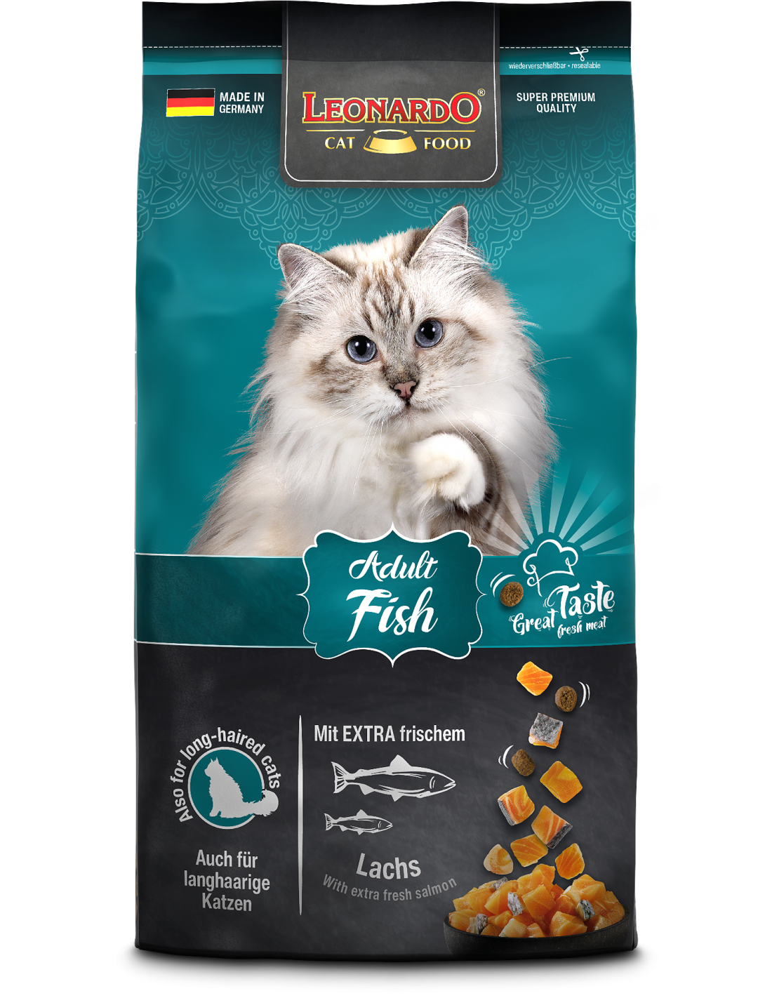 LEONARDO Adult Fish ofrece para gatos adultos a partir de un año, una saludable variedad de productos del mar. las deliciosas croquetas son muy apreciadas por los fans del pescado. Los ácidos grasos naturales omega 3 del pescado marino proporcionan un pelaje sedoso y una piel sana. Apto también para gatos de pelo largo.
