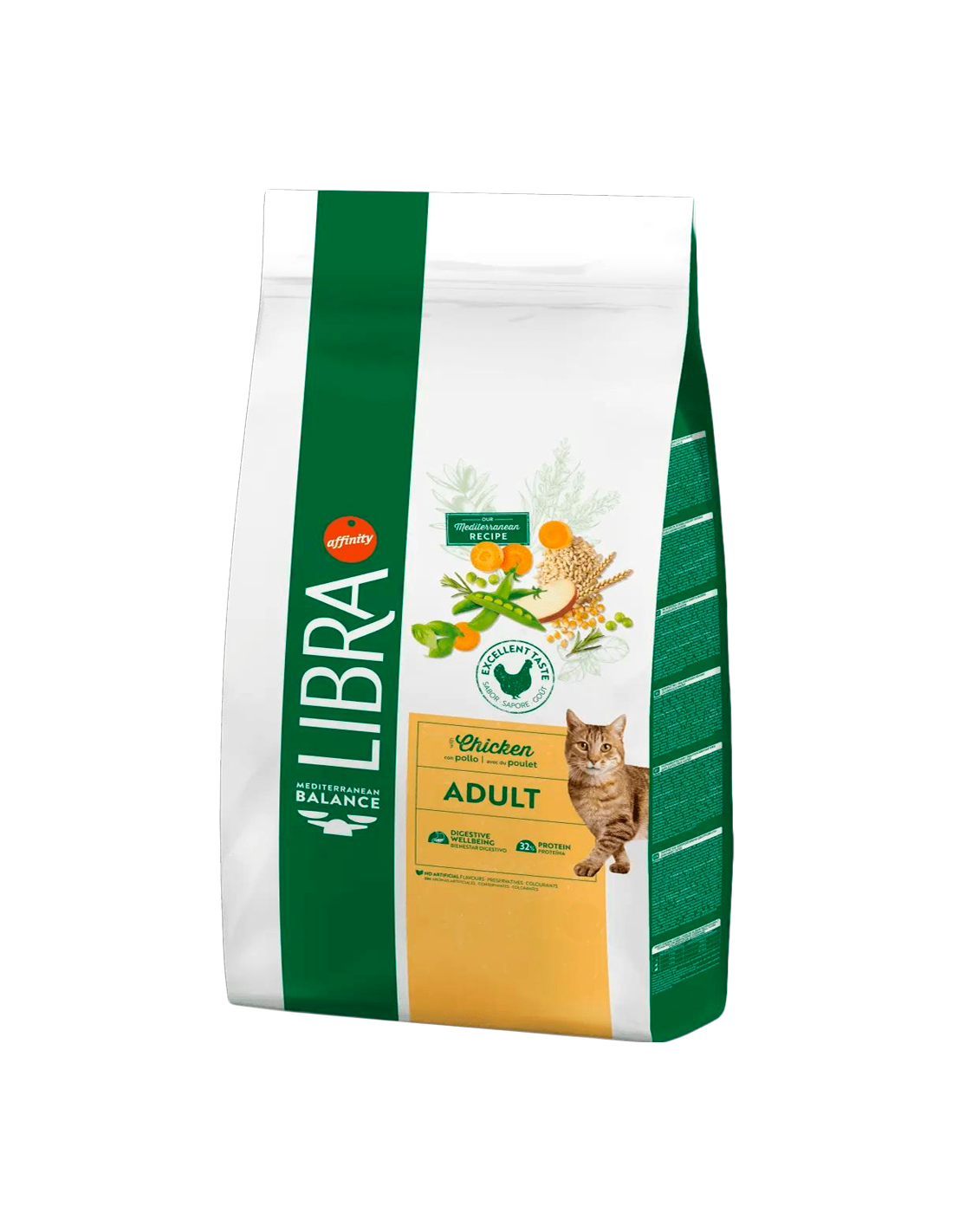Libra Cat Adult Pollo es una receta mediterránea completa y equilibrada que aporta una nutrición esencial a tu gato. Formulada con Pollo, una proporción correcta de nutrientes e ingredientes de calidad como frutas, verduras, cereales integrales y hierbas aromáticas, ayuda a mantener una buena condición física, energía para su vitalidad y un óptimo cuidado de la piel y el pelo.