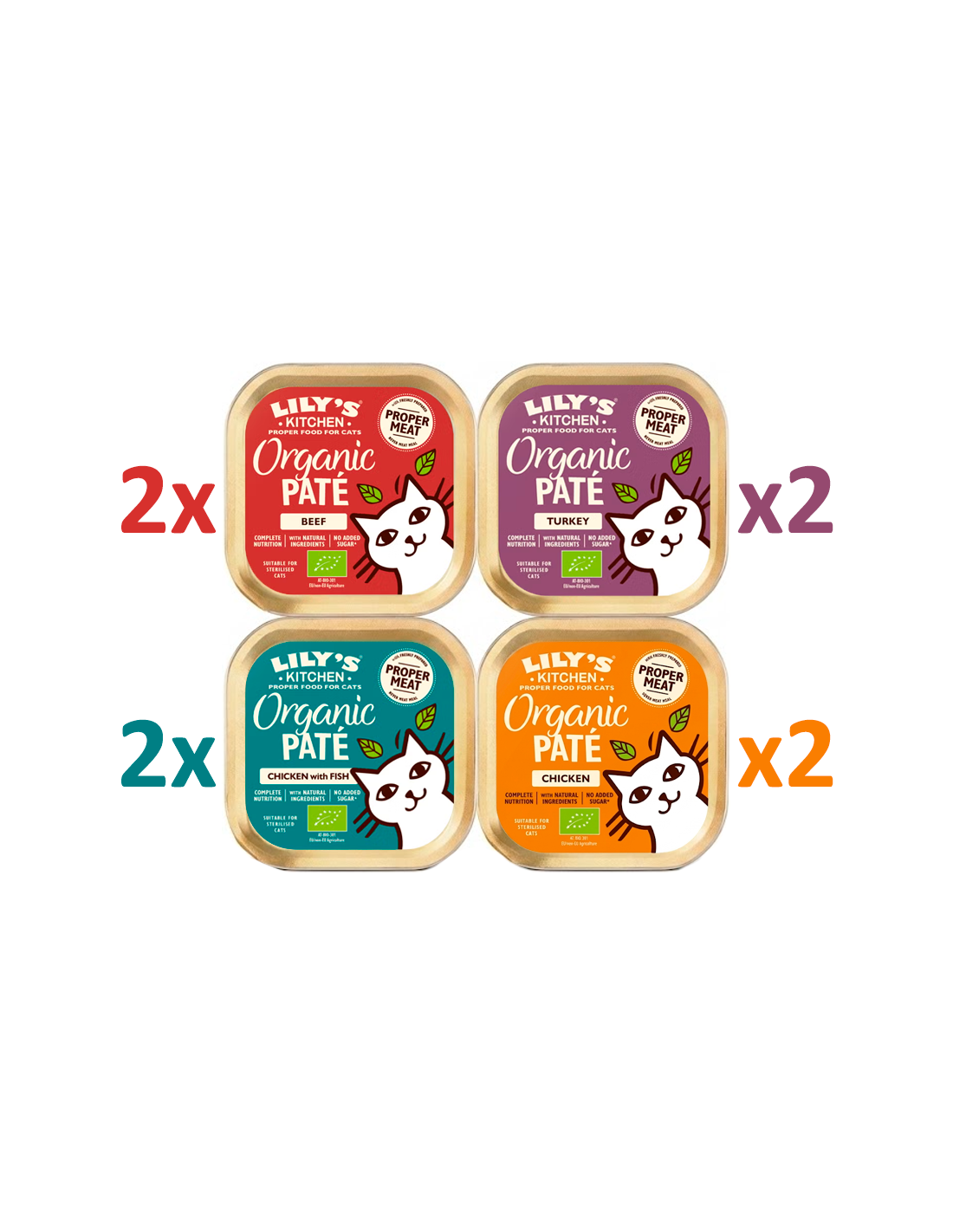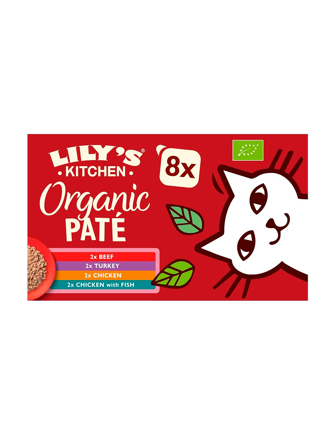 El Lily's Kitchen Cat Organic Paté Multipack es una selección de 8 tarrinas de alimento húmedo con 4 deliciosos sabores, ideal para gatos adultos que prefieren ingredientes orgánicos. Con una textura suave y sedosa, cada receta está elaborada con carne y vísceras de calidad, ingredientes naturales y ecológicos, sin cereales ni azúcares añadidos, y ofrece una nutrición completa y equilibrada.