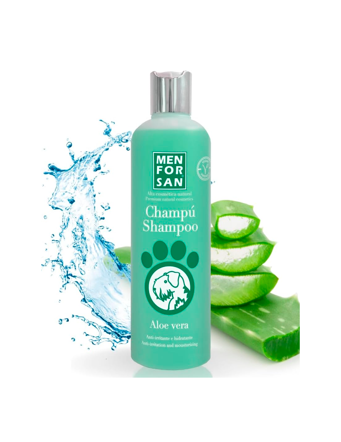 MenForSan Champú con Aloe Vera es un champú de máxima calidad con ALOE VERA 100% natural de cultivo ecológico. Está indicado para perros con pieles irritadas, picaduras, erupciones y eczemas. Proporciona brillo y suavidad, hidrata en profundidad y es muy útil para reparar pelajes estropeados. Su pH neutro y tensioactivos suaves lo hacen apto para uso frecuente en todo tipo de razas y pelajes.