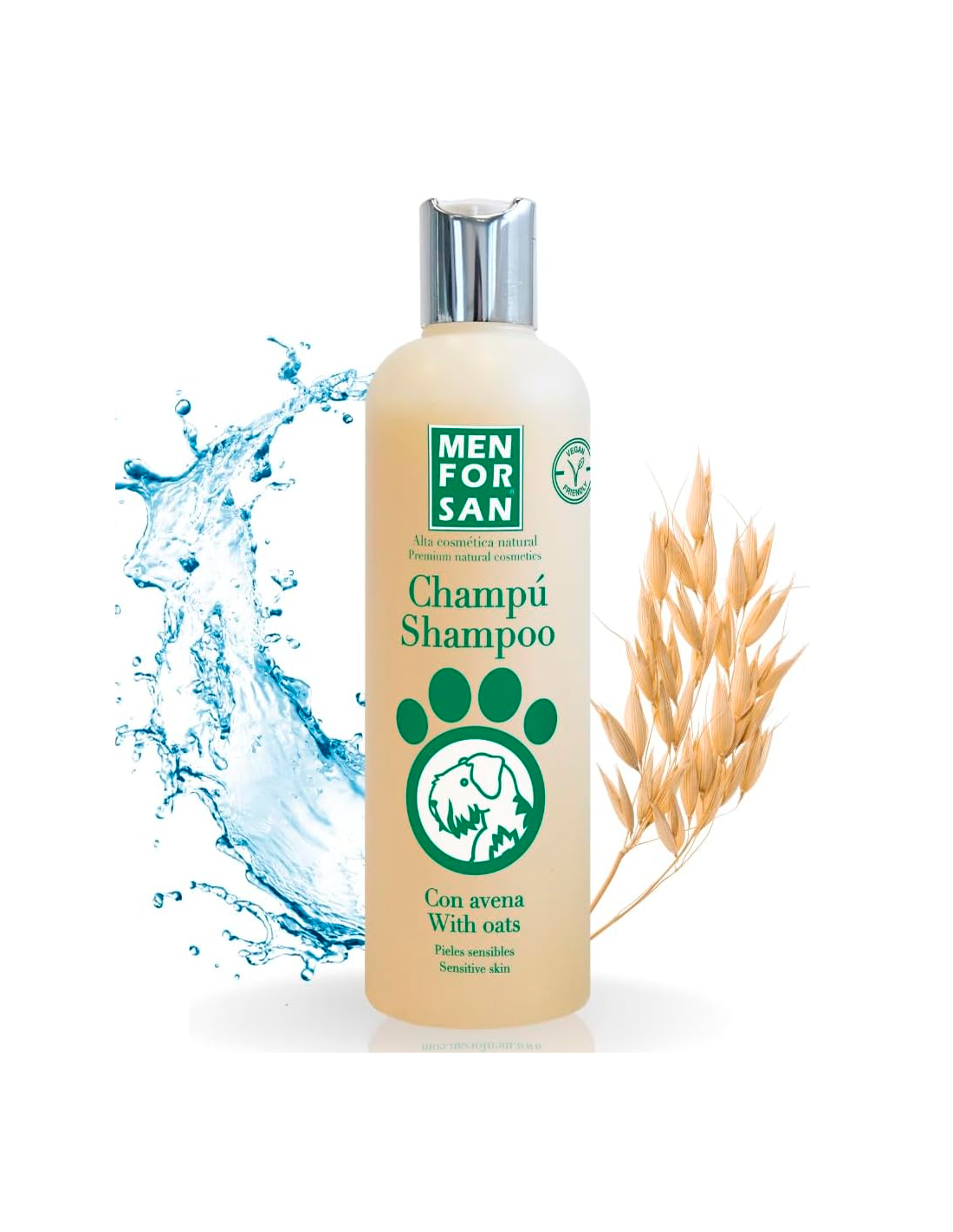 MenForSan Champú con Avena es un champú natural de máxima calidad, ideal para perros con pieles delicadas, secas, muy sensibles o irritadas, así como para razas con pelajes frágiles. Su fórmula suave con pH neutro y avena 100% natural, hidrata, protege y fortalece el pelo sin alterar las propiedades protectoras de la piel.
