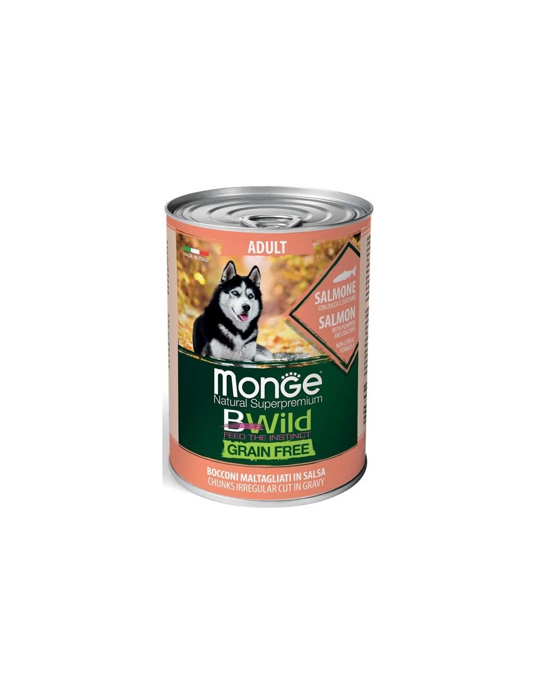 Monge BWild Grain Free Adult Salmón. Latas Perros Adultos Todas las Razas Dieta Normal Salmón en Bocados en Salsa