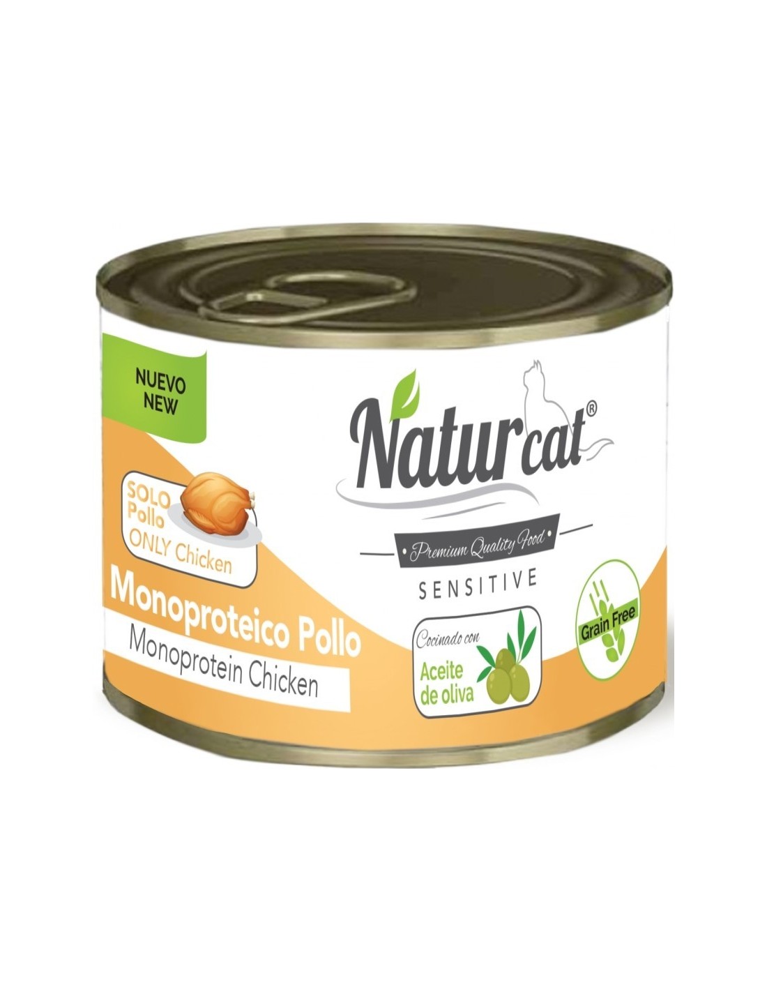 Naturcat Sensitive Adult Monoproteico Pollo Grain Free. Latas Gatos Adultos Dieta Normal Digestibilidad Hipoalergénico Pollo en Paté Sin Cereales
