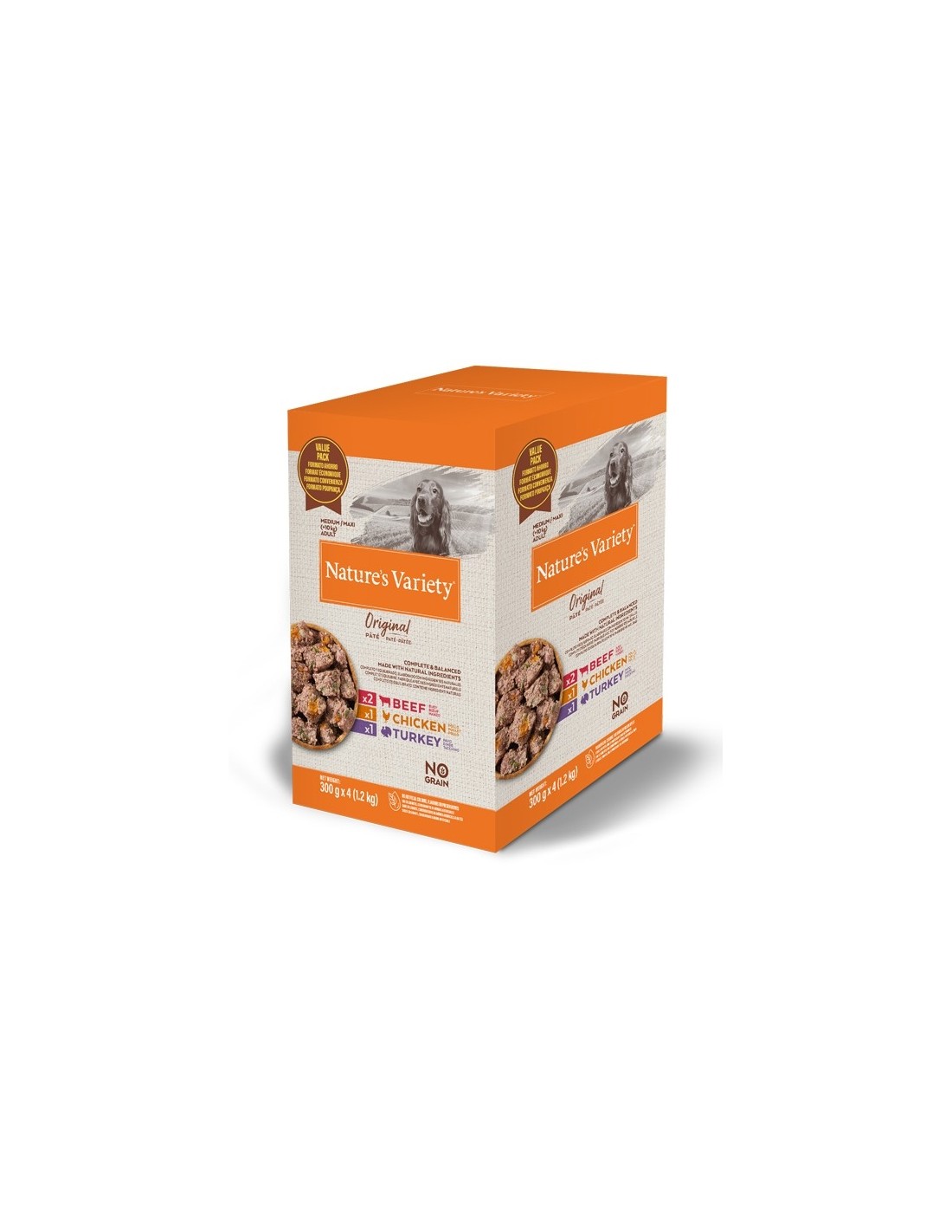 Alimento completo y equilibrado para perros adultos, sin cereales. Con pollo, ternera o pavo de alta calidad como ingrediente principal, y con frutas y verduras. Cocido al vapor a temperatura óptima en sus propios jugos para preservar mejor los nutrientes