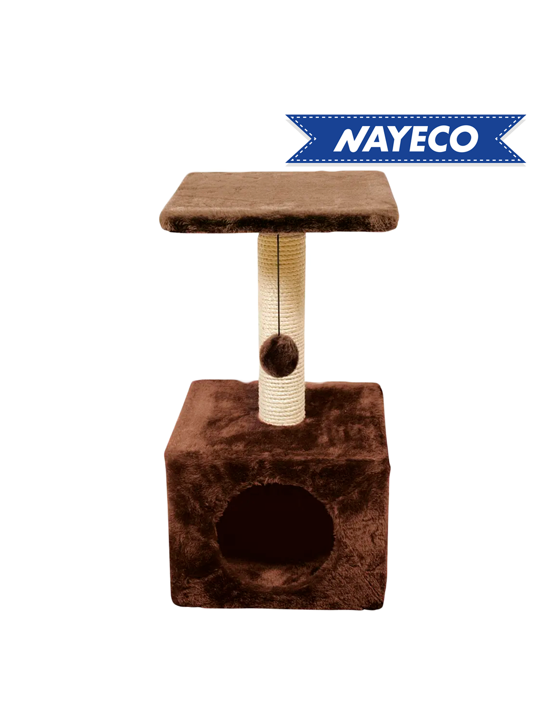 Rascador compacto (30x30x60 cm) con postes, pelota y refugio, para rascar, jugar y relajarse.