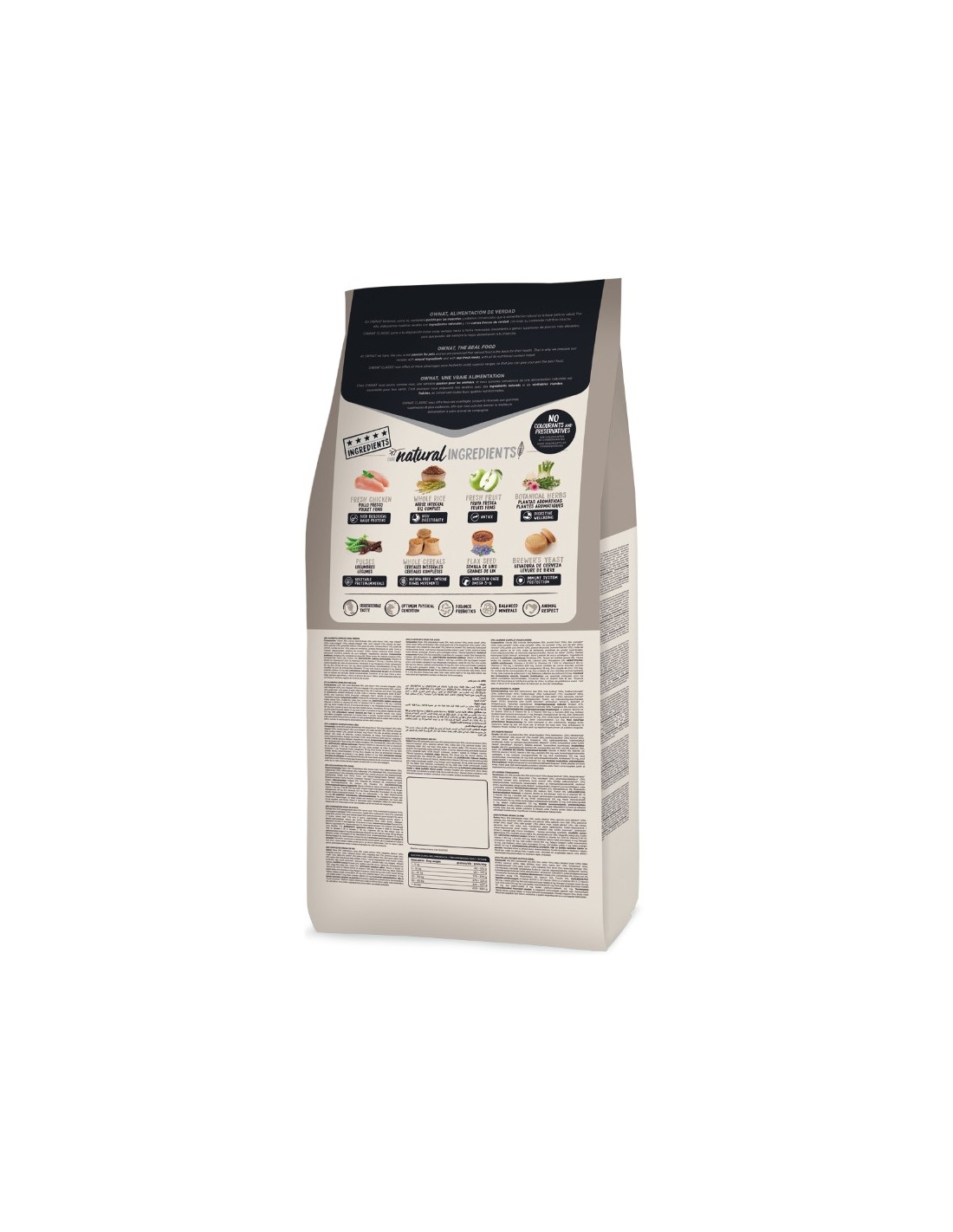 - Sin colorantes: los colorantes tienen una función puramente estética, sin valor nutricional. Por ello se han eliminado totalmente de las fórmulas de Ownat.