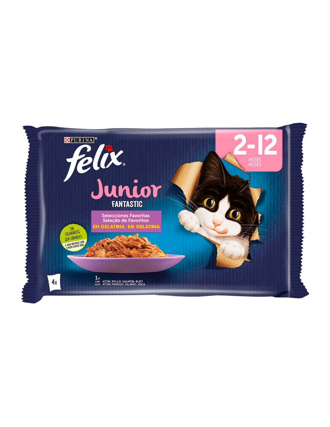 Purina Felix Fantastic Junior en Gelatina ofrece una alimentación 100% completa y equilibrada para gatitos. Con tiernos trocitos en suculenta gelatina, estas recetas están especialmente formuladas para el primer año de vida, aportando proteínas, vitaminas y minerales esenciales para un desarrollo fuerte.