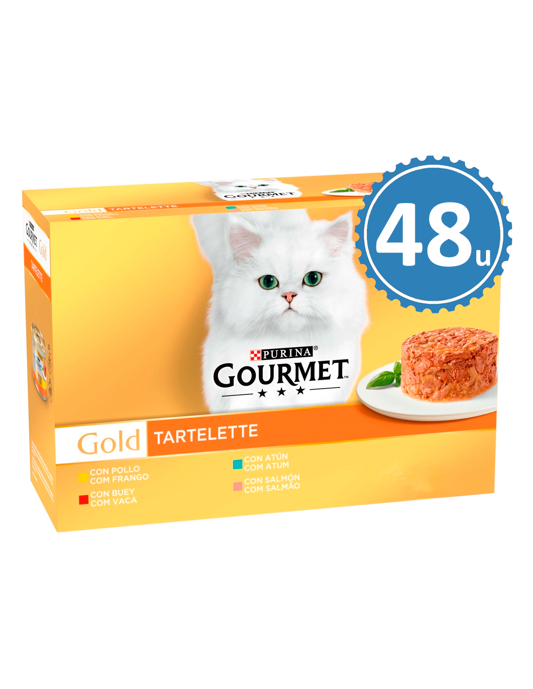 Purina Gourmet Gold Adult Tartelette Multi Pack ofrece una experiencia culinaria exquisita para gatos adultos. Este alimento húmedo 100% completo y equilibrado presenta trocitos delicadamente cortados de carne o pescado con un toque de verduras y salsa, todo ello en una deliciosa textura de pastel.