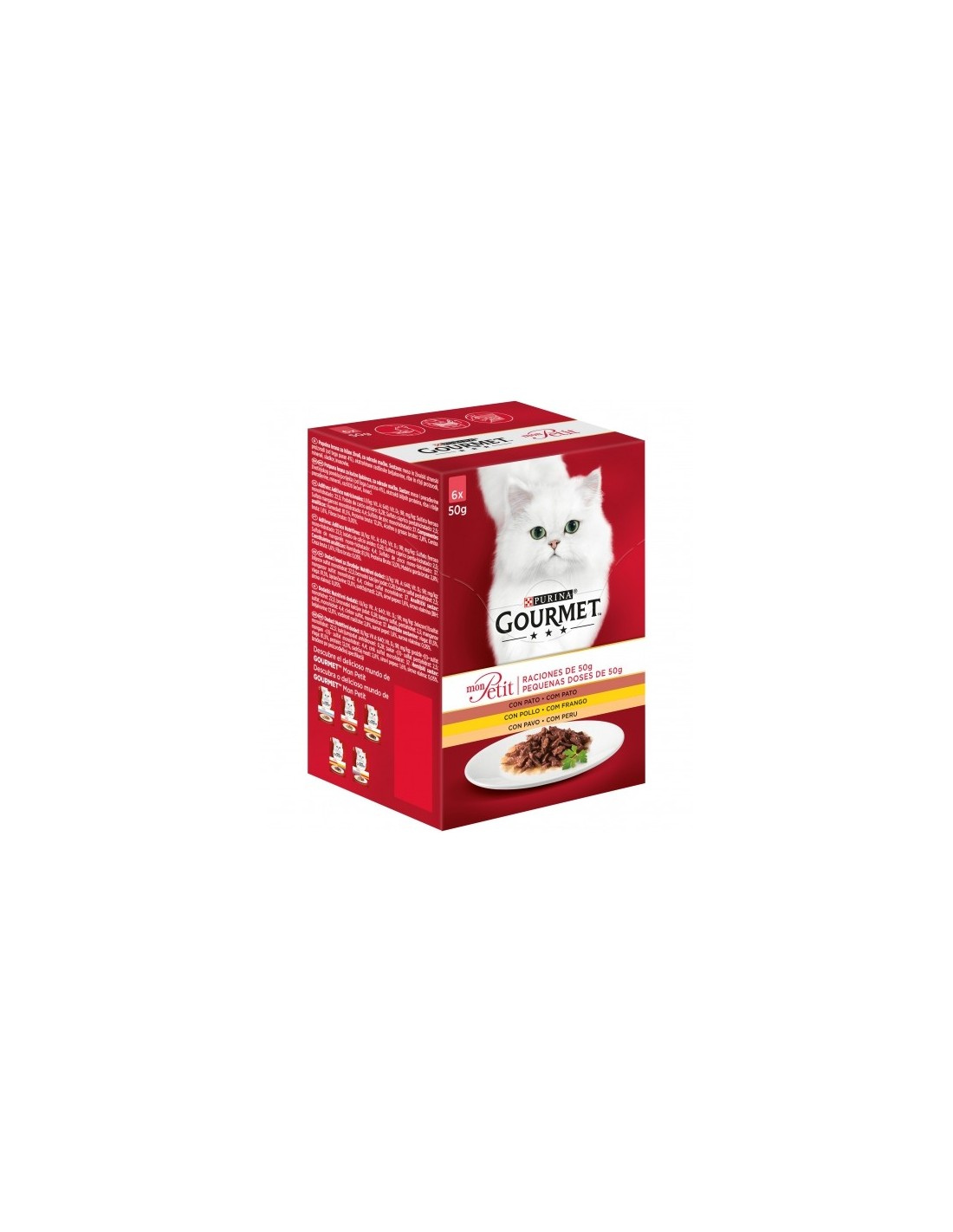 Purina Gourmet Mon Petit es una comida húmeda compuesta por finos cortes preparados en una deliciosa salsa para una excelente comida. Su presentación en sobres de 50 gr garantizan la frescura del alimento, ya que se puede servir entero sin tener que conservar parte de la comida para la siguiente toma.