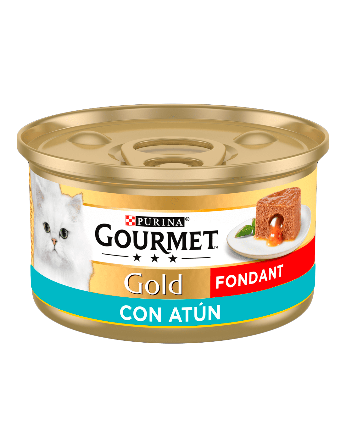 Purina Gourmet Gold Adult Fondant Atún es un alimento 100% completo y equilibrado, elaborado con ingredientes de alta calidad. Ofrece una delicada e irresistible mousse con atún, que esconde un sorprendente corazón líquido de suculenta salsa en su interior, brindando una experiencia culinaria única para tu gato.