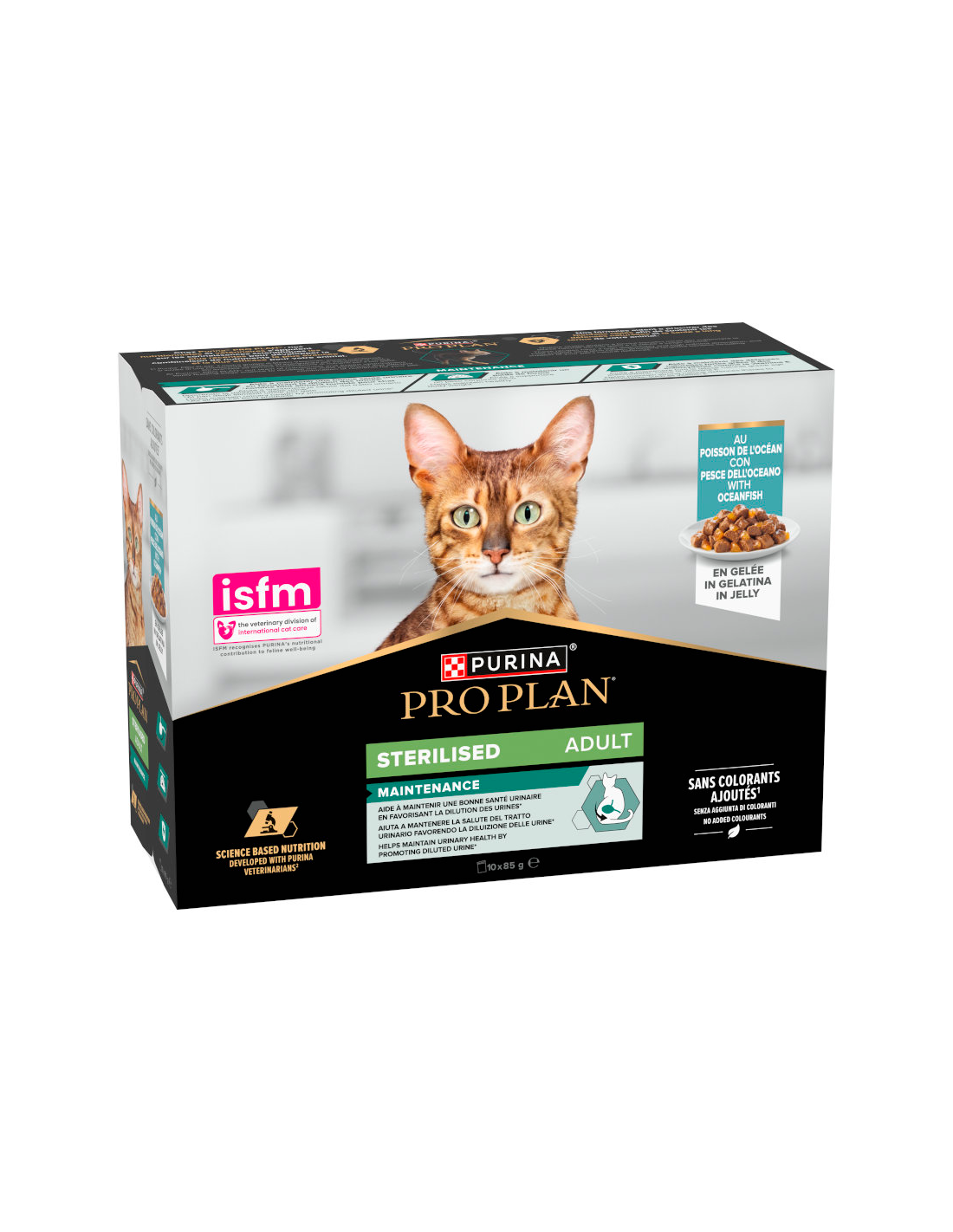 Sobres de trozos de pescado del océano en gelatina para gatos adultos esterilizados. Pack 10x85gr.
