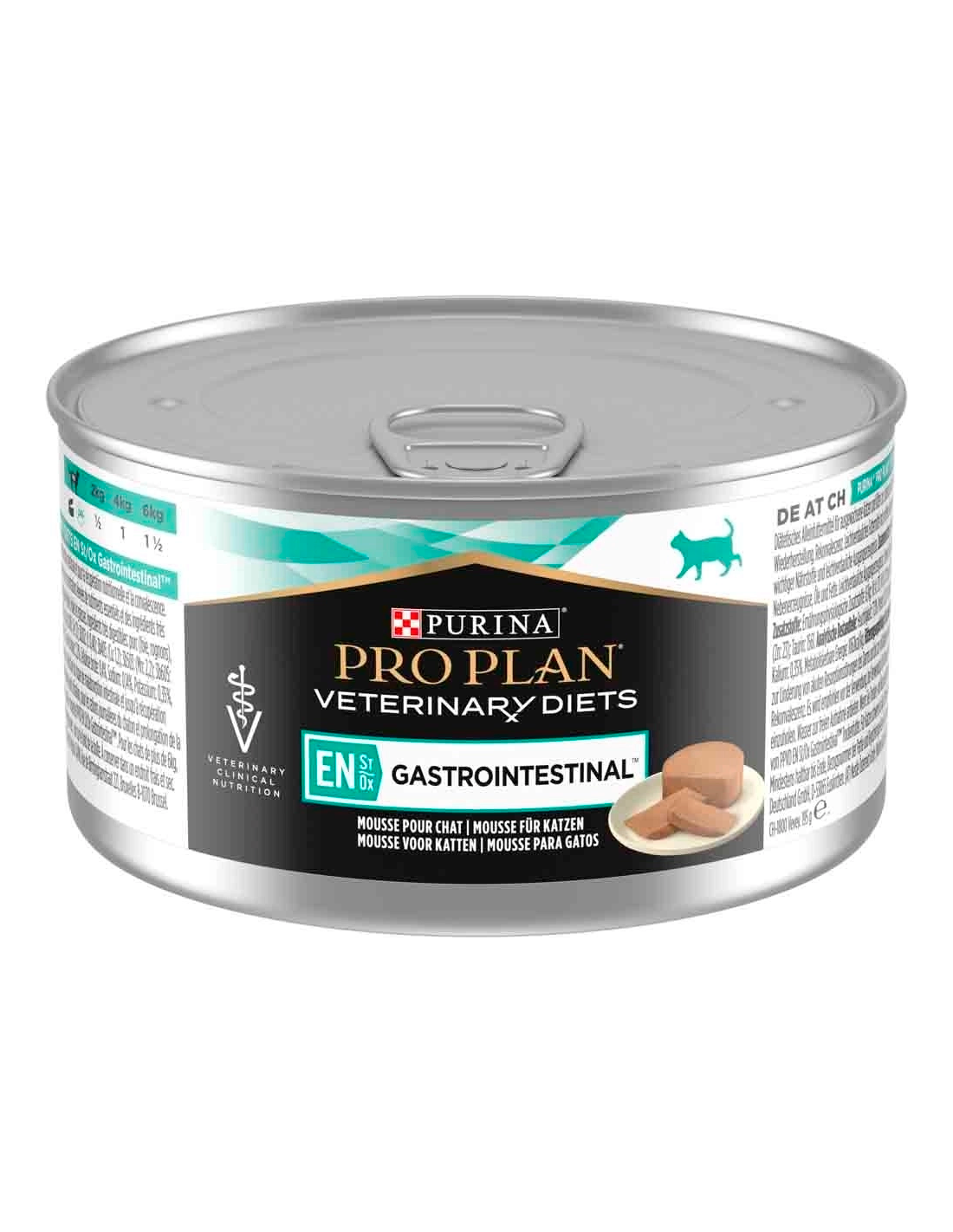 Purina Pro Plan Veterinary Diets Cat Gastrointestinal Mousse es un alimento completo en lata, formulado para gatos adultos y gatitos. Su diseño dietético ayuda a la reducción de los trastornos de la absorción intestinal y favorece la recuperación nutricional y la convalecencia, con ingredientes fáciles de digerir y una alta densidad energética.