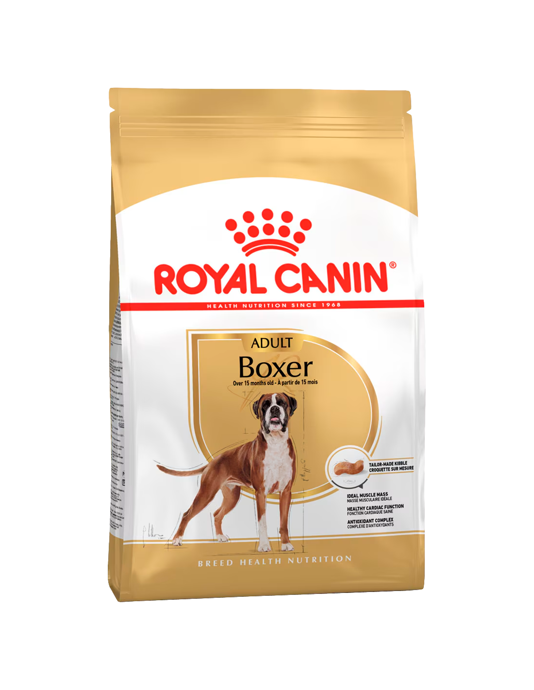 Boxer Adult de ROYAL CANIN® es un alimento apto para boxers a partir de 15 meses y ha sido especialmente formulado teniendo en cuenta las necesidades nutricionales de tu perro adulto.