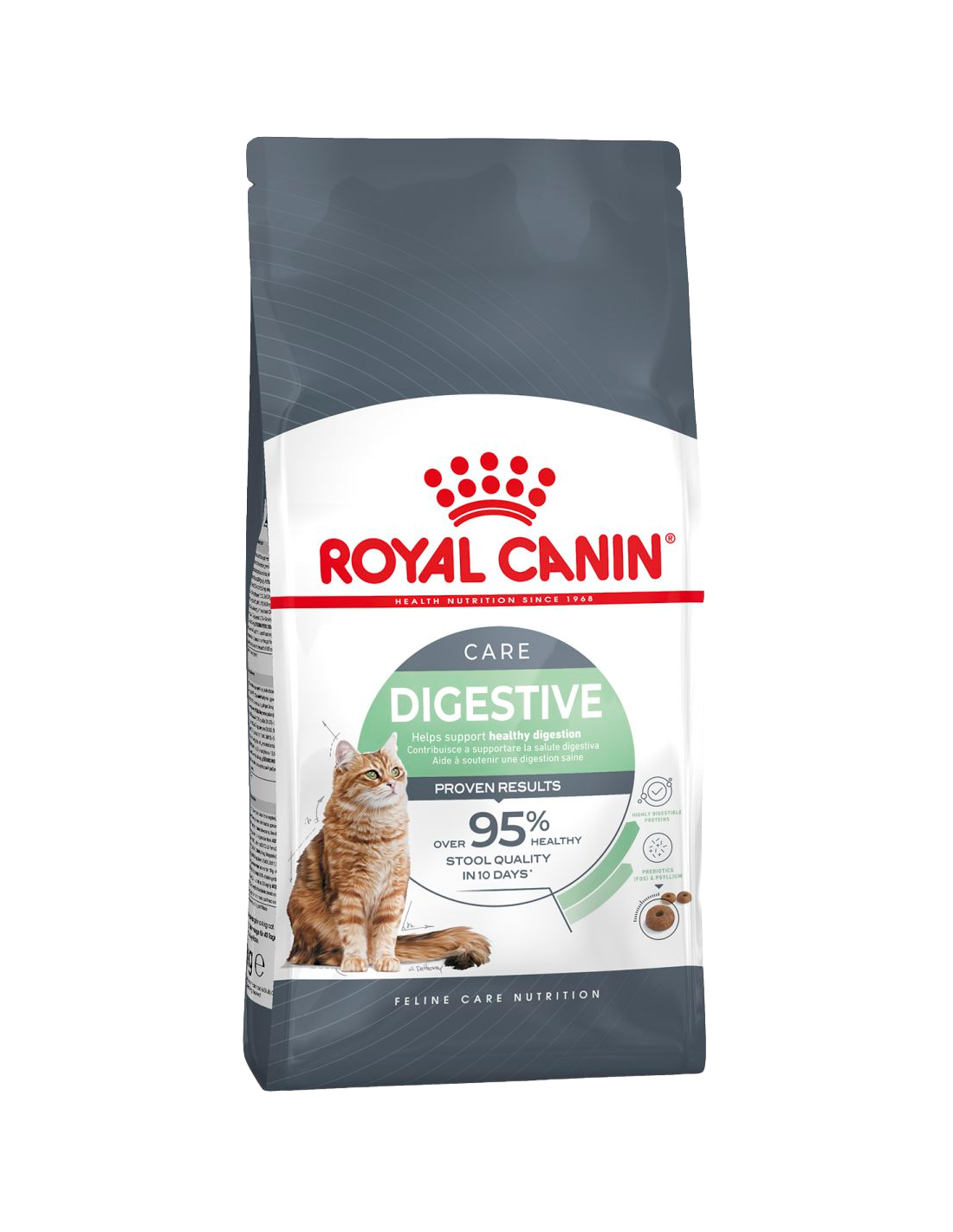 ROYAL CANIN® Digestive Care es un alimento seco nutricionalmente completo y equilibrado, específicamente diseñado para gatos adultos de 1 a 12 años (incluyendo esterilizados). Su fórmula contribuye a mantener una digestión saludable y una óptima calidad de las heces, con resultados probados en tan solo 10 días.
