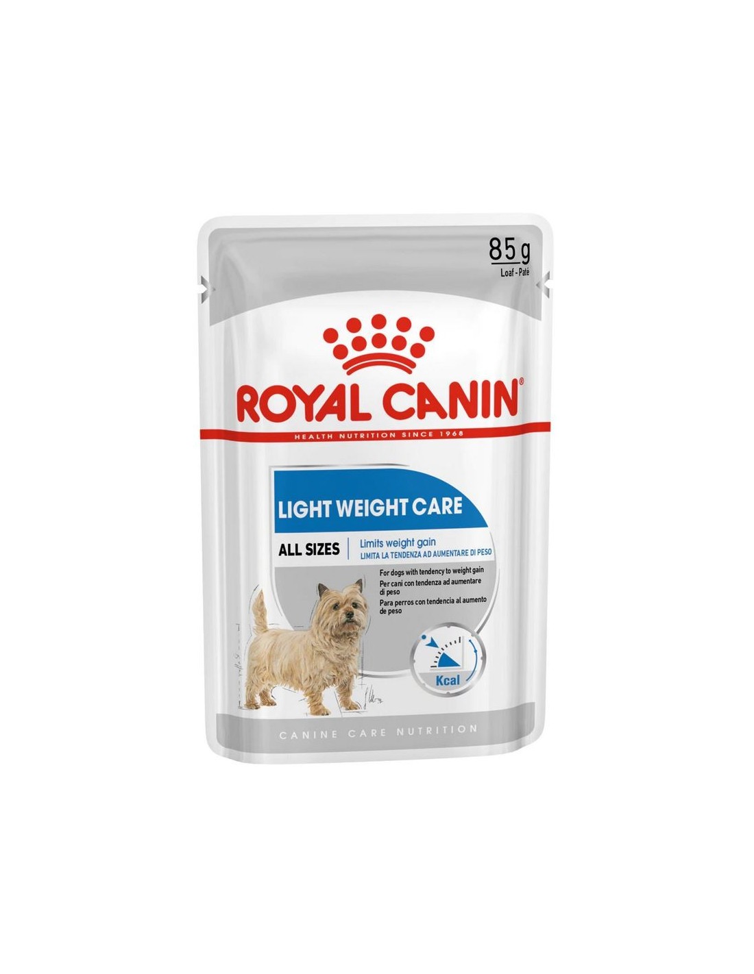 Royal Canin Light Weight Care es un alimento húmedo diseñado para perros con sobrepeso o con tendencia a engordar. Utiliza una fórmula especial que limita el aumento de peso y les ayuda a mantenerlo para favorecer una condición corporal óptima. Además, su receta es deliciosa para que, mientras tu cuidas la salud de tu peludo, él disfrute de un sabroso plato. Es adecuada para perros de todas las razas y tamaños.
