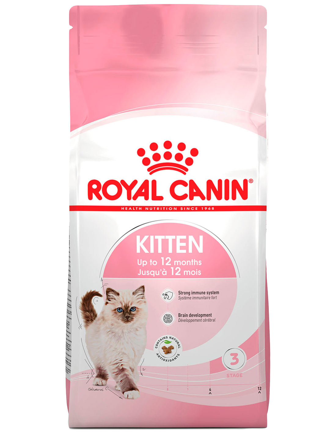 ROYAL CANIN® Kitten és un aliment sec complet formulat especialment per cobrir les necessitats nutricionals dels gatets durant la “fase de consolidació” del seu creixement (de 4 a 12 mesos d'edat). Aquesta fórmula adaptada contribueix al creixement d'ossos i músculs, al desenvolupament del sistema immunitari i cerebral, i promou una visió saludable i una digestió equilibrada.