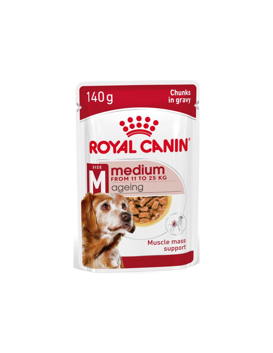 Trozos de carne en salsa para perros de razas medianas (desde 11 hasta los 25 kg) y más de 10 años.