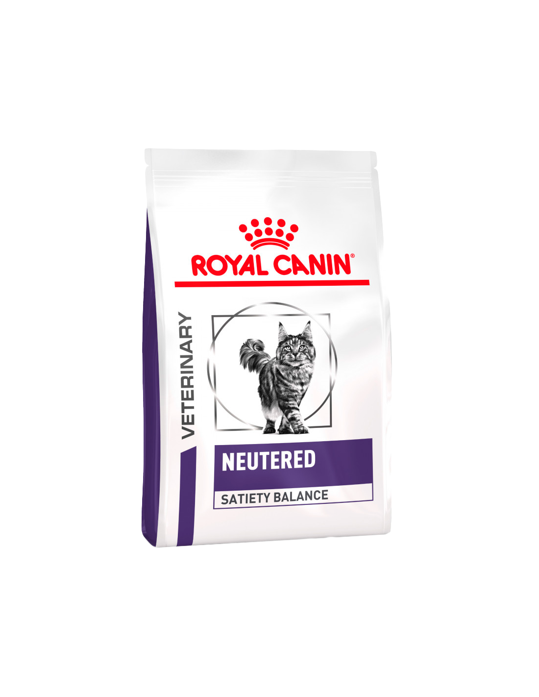 ROYAL CANIN® Neutered Satiety Balance es un alimento dietético completo y equilibrado, diseñado para satisfacer las necesidades nutricionales de los gatos adultos esterilizados o con tendencia al aumento de peso, desde la esterilización hasta los 7 años de edad. Su fórmula con alto contenido en fibra ayuda a regular el apetito, favorece el mantenimiento de un peso óptimo y promueve la salud urinaria.