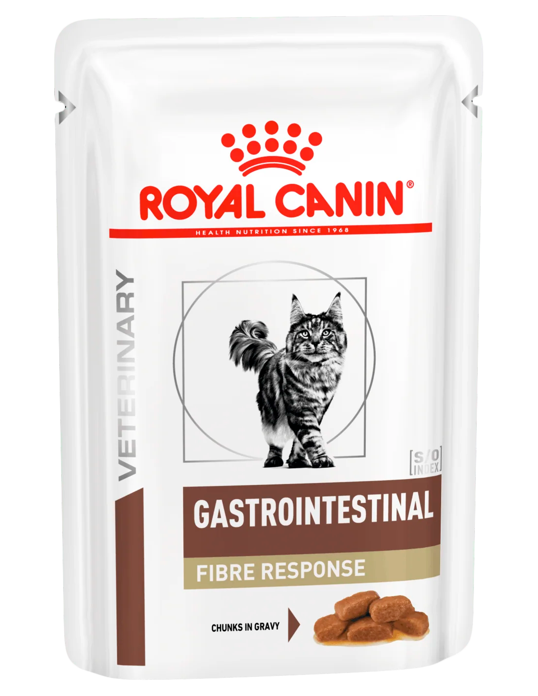 ROYAL CANIN® Gastrointestinal Fibre Response es un alimento húmedo dietético completo, formulado específicamente para la salud digestiva de gatos con estreñimiento crónico o sensibilidades gastrointestinales. Contiene altos niveles de psyllium para facilitar un tránsito saludable y proporciona energía adecuada para mantener un peso ideal.